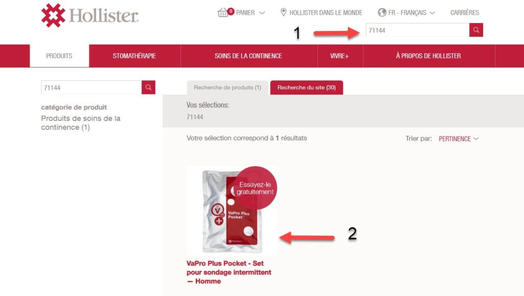 2° Cliquer sur le produit en question