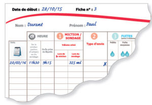 Votre professionnel de santé vous a peut-être demandé de tenir un calendrier mictionnel. Ce document lui fournira des informations qui l’aideront à mieux cerner la régularité de vos mictions (apports…
