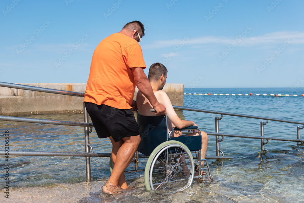 Des handiplagistes assurent un accueil et un accompagnement pour faire profiter de la baignade aux personnes en situation de handicap.