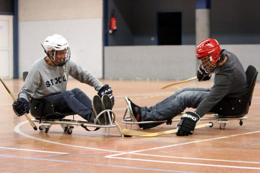 Le Hockey sur Luge est un handisport qui est dérivé du Hockey sur glace, handisport réputé puisqu’il est inclus dans les sports paralympique depuis 1994. Il se joue sur une patinoire et respecte les mêmes règles que le hockey sur glace, avec différentes adaptations pour tenir compte du handicap des joueurs. Les athlètes sont assis sur une luge fixée sur deux lames de patins. Le palet a la place de passer sous la luge. Les sportifs se déplacent et projettent le palais avec deux bâtons dont une extrémité est pointue.
