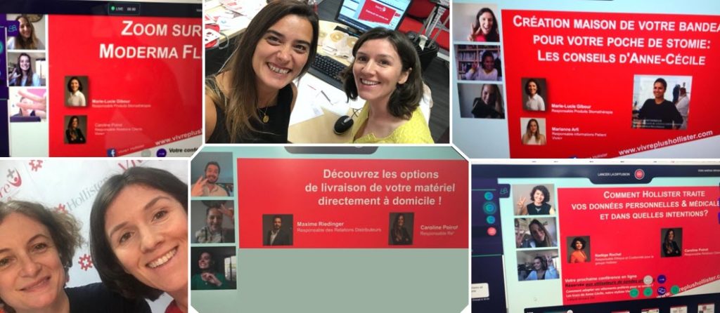 - La présentation d’un sujet particulier avec la possibilité pour vous de poser des questions et surtout de recevoir des réponses en direct : Caractéristiques produits, Prestataires de services à domicile, Stylisme, Tuto de création d’un bandeau maison pour votre poche de stomie, gestion de vos données personnelles & médicales chez Hollister…