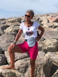 Opérée en 2019 d’une iléostomie, Nathalie a toujours été sportive et dynamique. L’une de ses craintes après l’opération était le maintien de sa poche ou comment continuer à garder le même rythme sans que la poche et le support ne bougent.